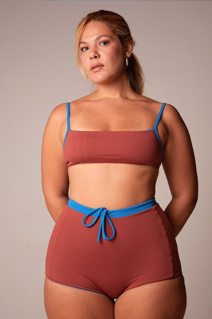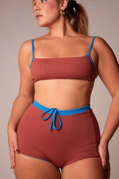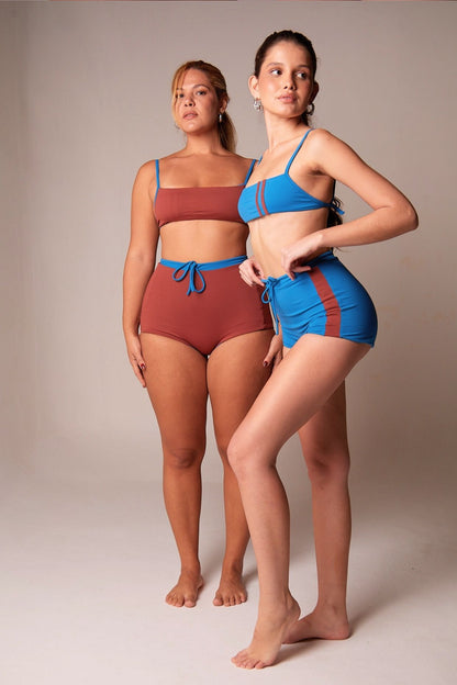 O Short Sheila traz de volta os bons velhos tempos do axé brasileiro, nosso shortinho é de cintura alta e cadarço ajustável.